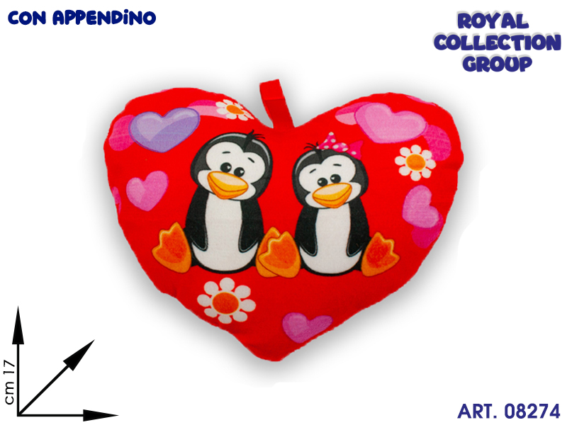 PL2862 2 CUORE PINGUINI INNAMORATI PELUCHE CM 17